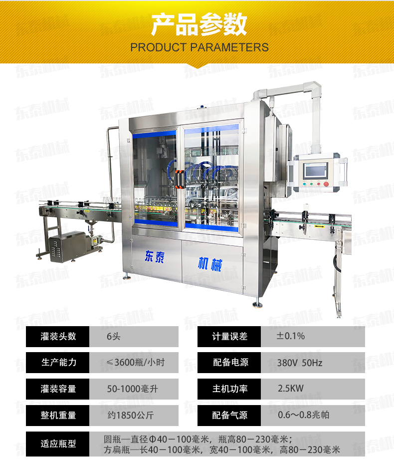 10、該全自動蜂蜜灌裝機設有無瓶不灌裝功能,不需更換零件,即可快速調(diào)整各種不同形狀規(guī)格的瓶子;