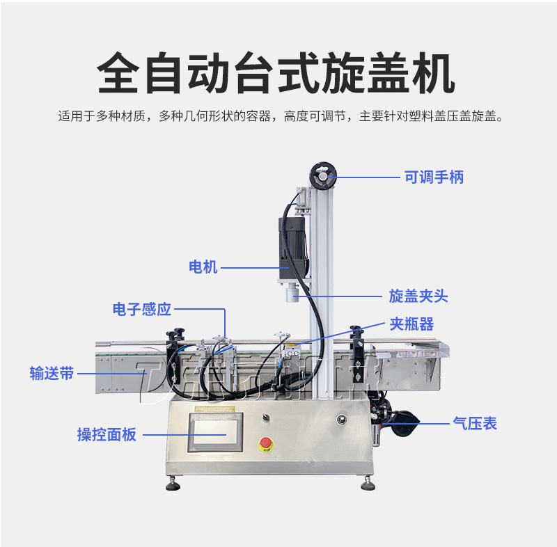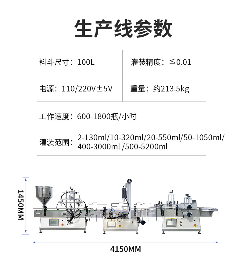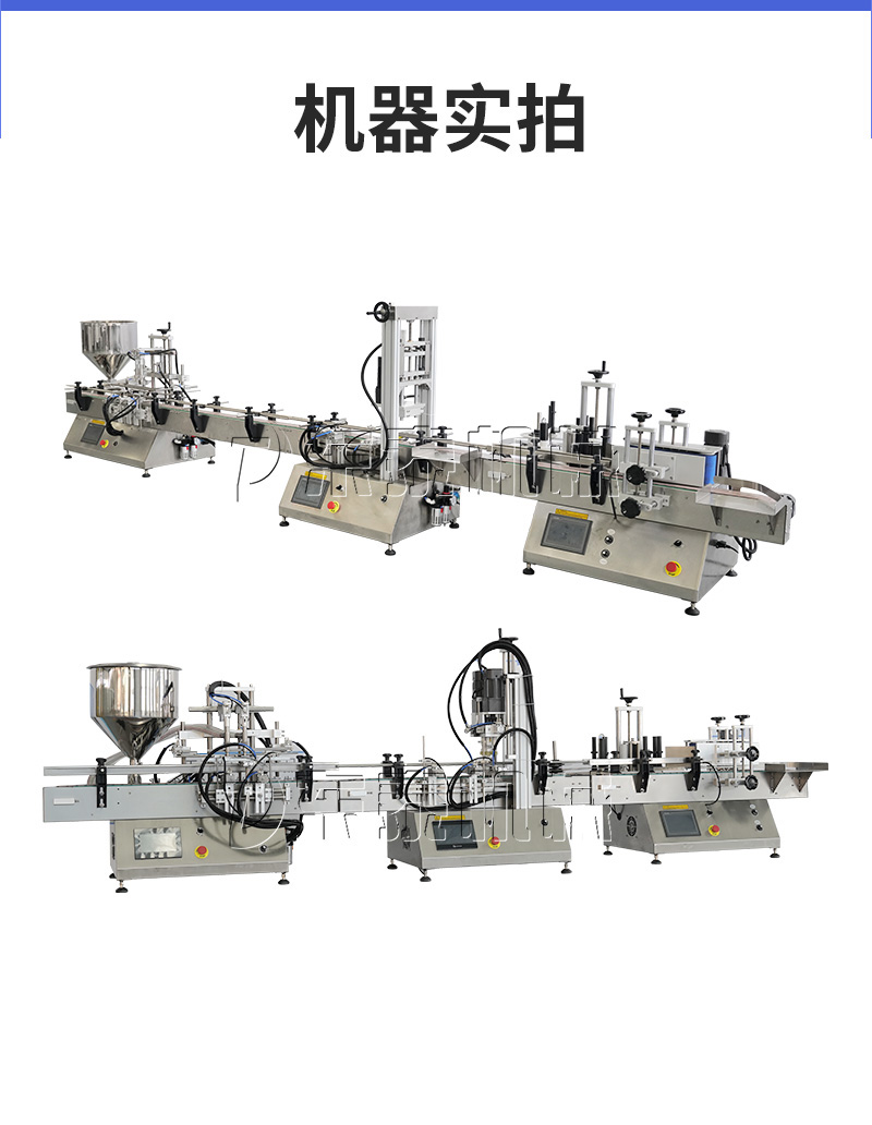 產(chǎn)品說(shuō)明:生產(chǎn)線根據(jù)灌裝范圍選擇型號(hào),灌裝部分為雙頭下潛式灌裝機(jī),適用于不同物料不同瓶子的灌裝,配備自動(dòng)壓蓋機(jī)和圓瓶貼標(biāo)機(jī),可實(shí)現(xiàn)不同蓋子的旋蓋貼標(biāo)工作。