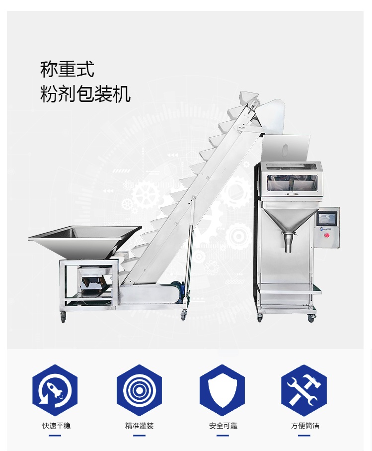 ZX-C型稱重式定量包裝機(jī)是一種機(jī)械給料與電子稱重組合的定量裝袋機(jī)械,廣泛適用于食鹽、化工原料、飼料、醫(yī)藥、糧食、食品添加劑等流動(dòng)性較好的顆;蚍蹱钗锪系亩堪b,其優(yōu)點(diǎn)是:操作簡單、性能可靠、計(jì)量準(zhǔn)確、價(jià)格便宜、耐腐蝕性強(qiáng),是一種理想的定量包裝機(jī)械。