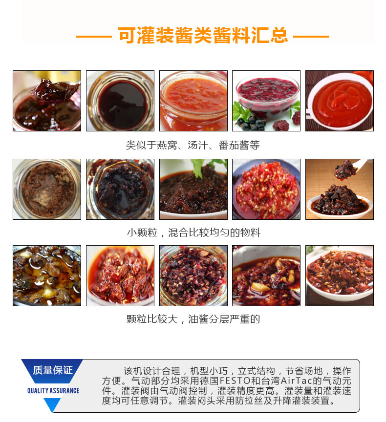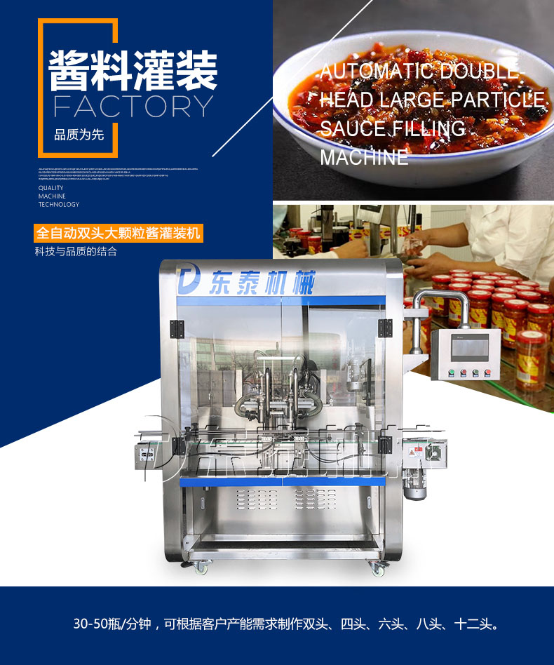 隨著機(jī)械技術(shù)的快速發(fā)展灌裝機(jī)的發(fā)展也是日新月異,使得其種類比較多。蘸醬在我國(guó)擁有悠久的歷史,在我國(guó)烹飪中占有著重要的地位,發(fā)展到現(xiàn)在在做菜和食品中也不可或缺,巨大的市場(chǎng)使得蘸醬灌裝機(jī)擁有巨