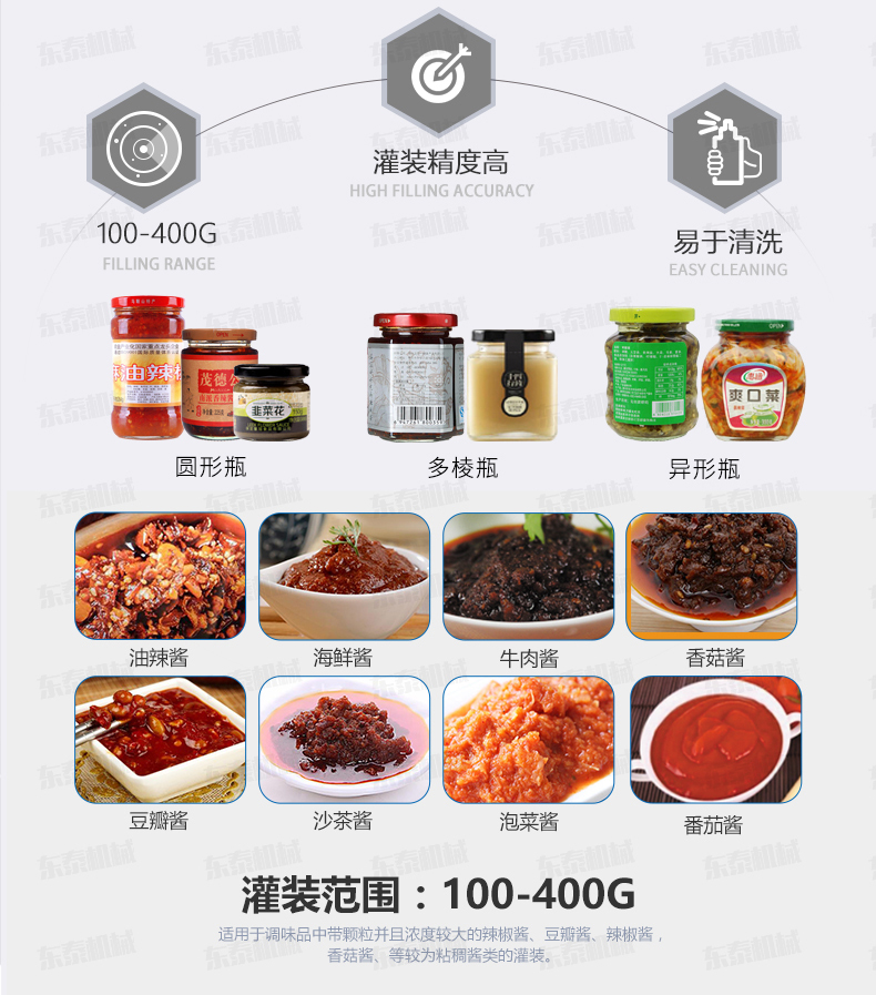 隨著現(xiàn)在人們生活水平的不斷提高,醬料產(chǎn)品的銷售量上正在不斷的增大中,同時醬料產(chǎn)品的包裝更是受到了人們的關注,正朝著自動化的方向發(fā)展的顆粒醬灌裝機走專業(yè)化發(fā)展的道路,靠技術進步來推動行業(yè)發(fā)展,為保證出醬料質量,顆粒醬灌裝機符合了現(xiàn)如今的經(jīng)濟進步的要求也符合了新時代的發(fā)展追求。