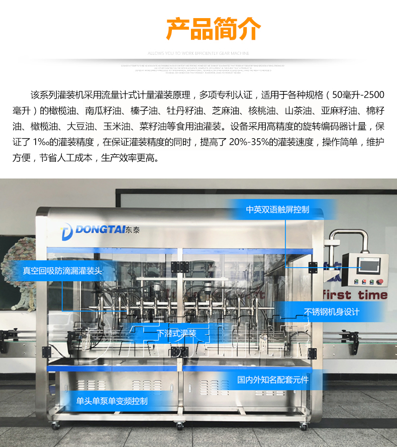 橄欖油和我們平常家里的食用油一樣,完全可以用來炒菜,煎東西等,很便捷很適宜的方法就是涼拌菜了。在炒菜時(shí)出鍋后,表面淋上一層初榨橄欖油,芳香撲鼻,增加飯菜的香氣。涼拌蔬菜時(shí),淋上一層初榨橄欖油,可增加蔬菜亮澤,保留了蔬菜中的營養(yǎng)元素,初榨橄欖油的用處還是很多的。橄欖油還有美容、祛痘、護(hù)發(fā)等功效。這么好的產(chǎn)品自然少不了專業(yè)的灌裝設(shè)備,東泰機(jī)械包裝機(jī)械作為灌裝機(jī)生產(chǎn)廠家,自主研發(fā)推出橄欖油自動(dòng)灌裝機(jī),橄欖油灌裝流水線,全自動(dòng)化、功能化、智能化的灌裝設(shè)備,成為橄欖油液體等相關(guān)行業(yè)的得力助手。