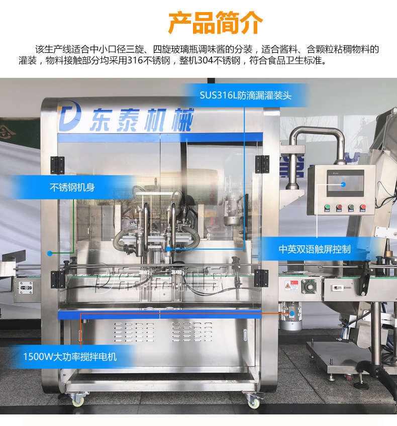 其實對于芝麻醬來說不僅是老北京的喜愛,現(xiàn)在對于一些人來說廚房里邊的芝麻醬一半以上都貢獻給拌面了,另外一半去哪呢?可以用來烙餅,可以用來做菜,可以用來做芝麻醬餅干,甚至湯里邊都要放芝麻醬,其開發(fā)的瓶裝芝麻醬自動灌裝機械、芝麻醬灌裝封口機生產(chǎn)設備讓傳統(tǒng)人工包裝徹底地告別了舞臺,并加快了自己在市場中的步伐,瓶裝芝麻醬自動灌裝機械具有故障率低,維修率低,堅固耐用,灌裝速度快,節(jié)能等特點,出現(xiàn)在了市場之上吸引了一大批的投資客與我們達成了很好的合作。